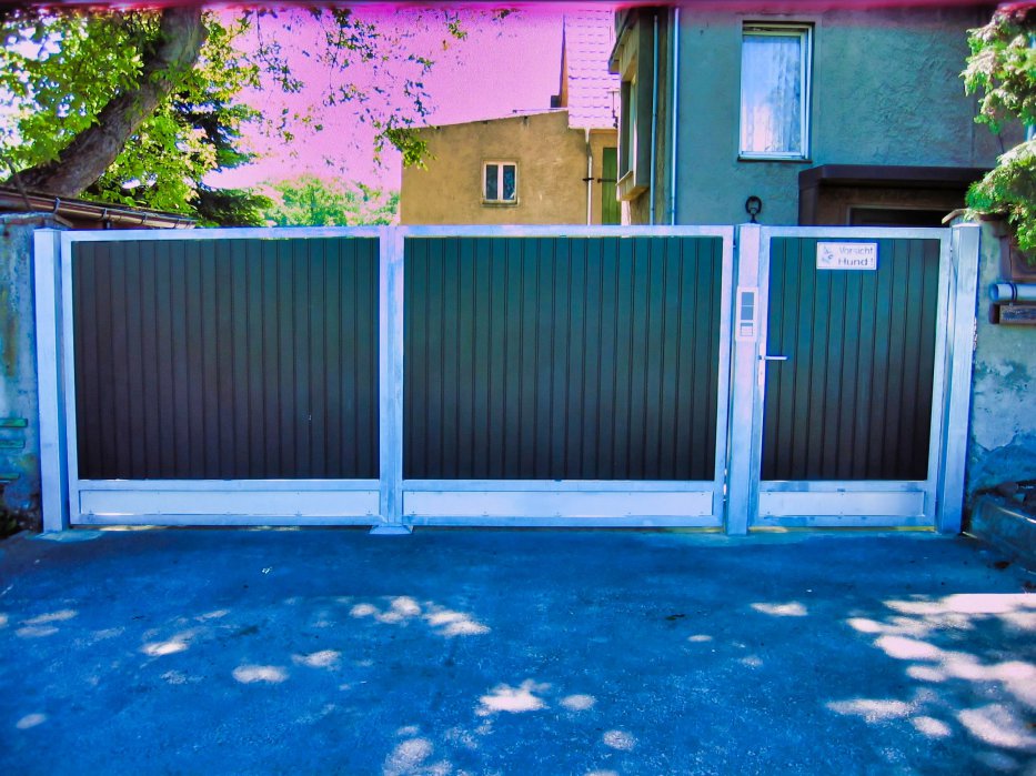 Ausführung: Flügeltore, Schiebetore mit Bodenschiene oder freitragend